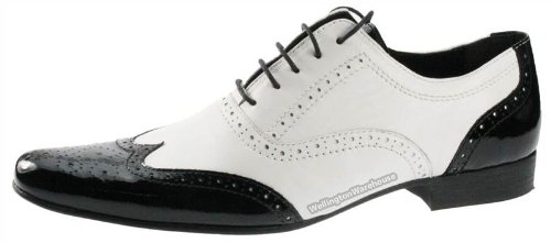 Red Tape Lavant Black Patent & White Leather Pointy Toe Brogue Mens Smart Shoes UK 7-11 - Red tape Lavant Mens High Quality Leather shoes. Smart formal evening lace up shoes are available in a black and white patent leather upper, and a black and white, and brown and white non patent leather upper. Perfect for any occasion, these Redtape shoes have a comfortable pointed toe fit with a brogue detailing for an added fashionable look. Available in UK sizes 7-11